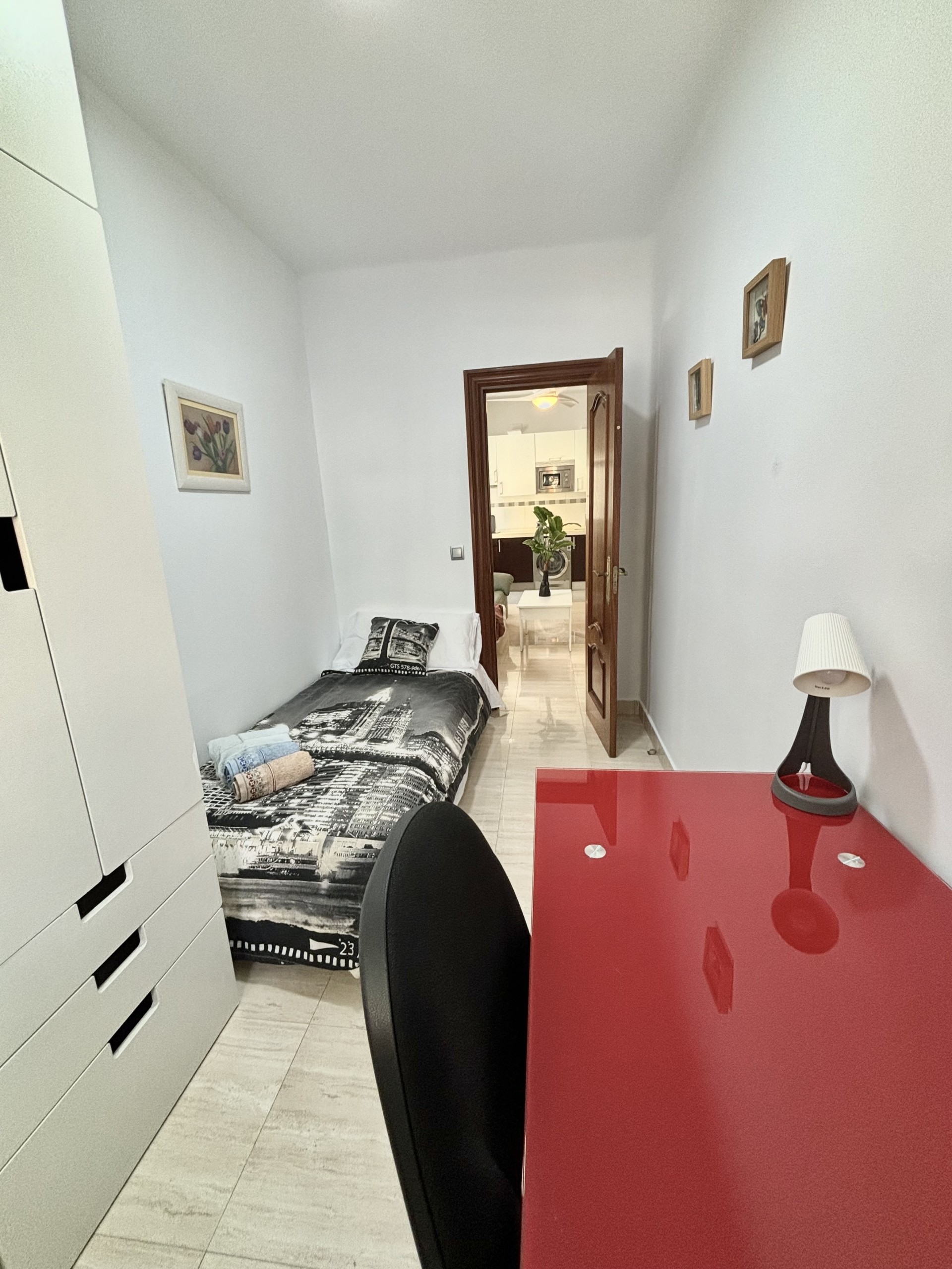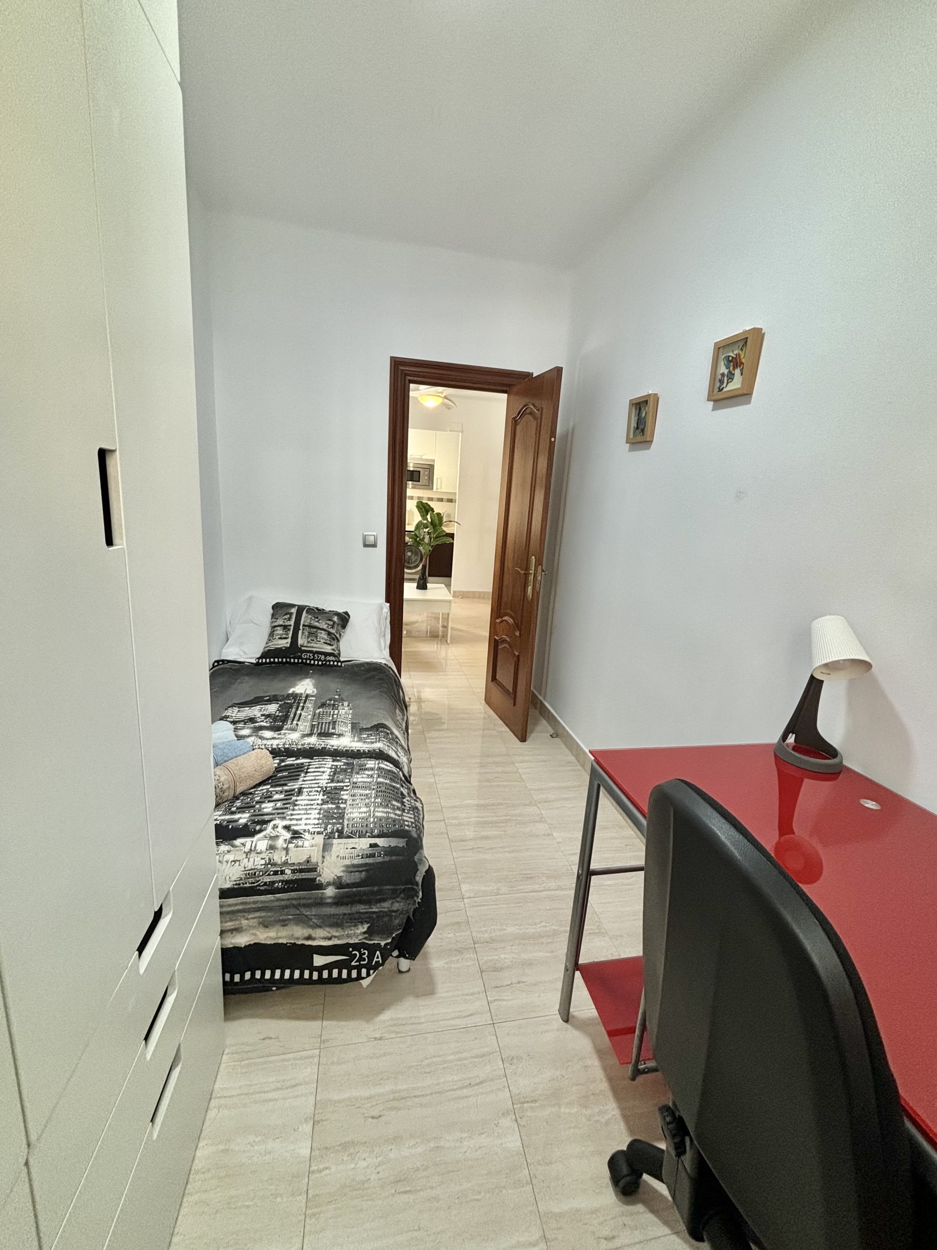 DORMITORIO SECUNDARIO: cama individual, con escritorio y un armario que lo acompaña.