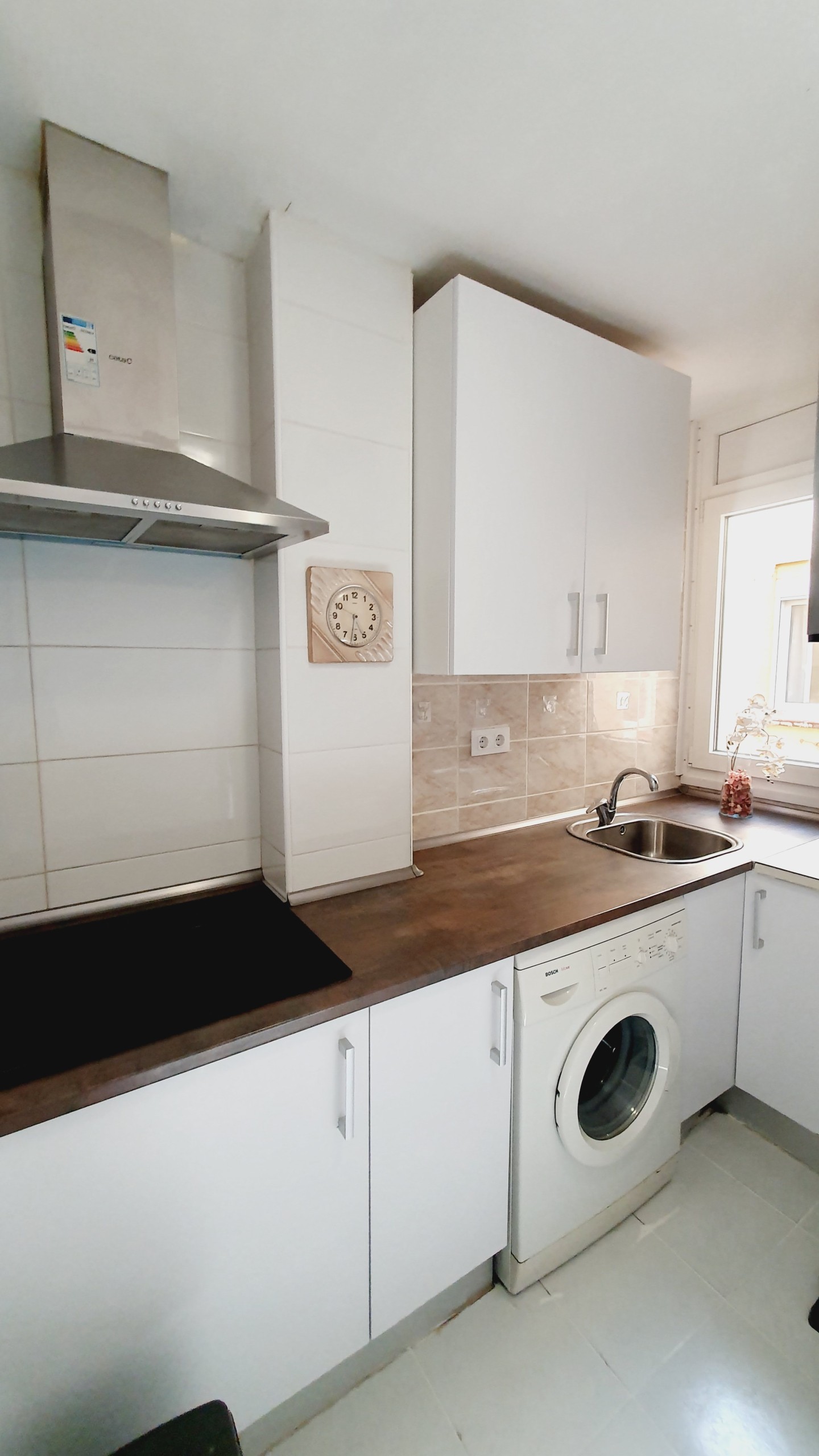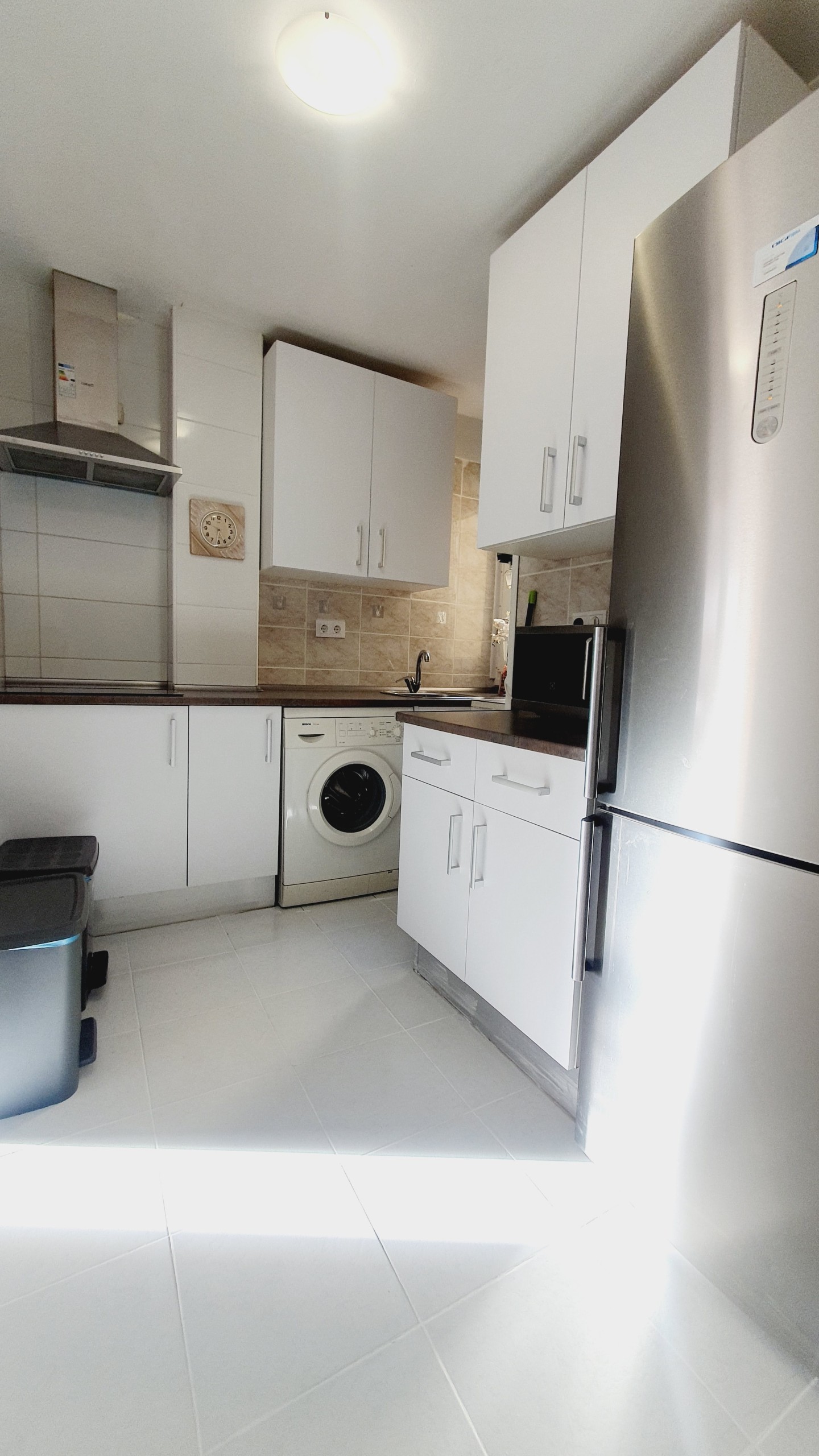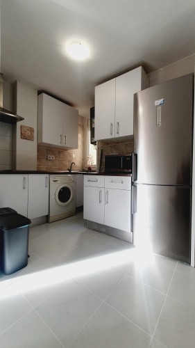 Equipada al completo con VITROCERÁMICA, CAMPANA EXTRACTORA, FRIGORÍFICO COMBI, MICROONDAS con grill y además de menaje de cocina completo, para que no te falte de nada.