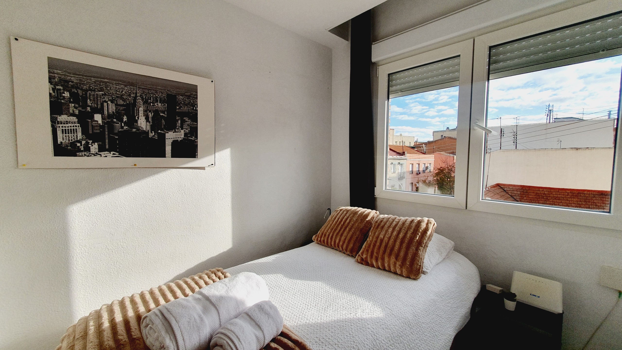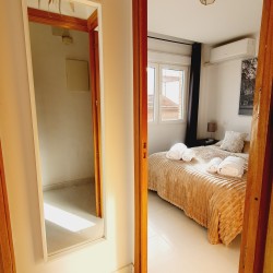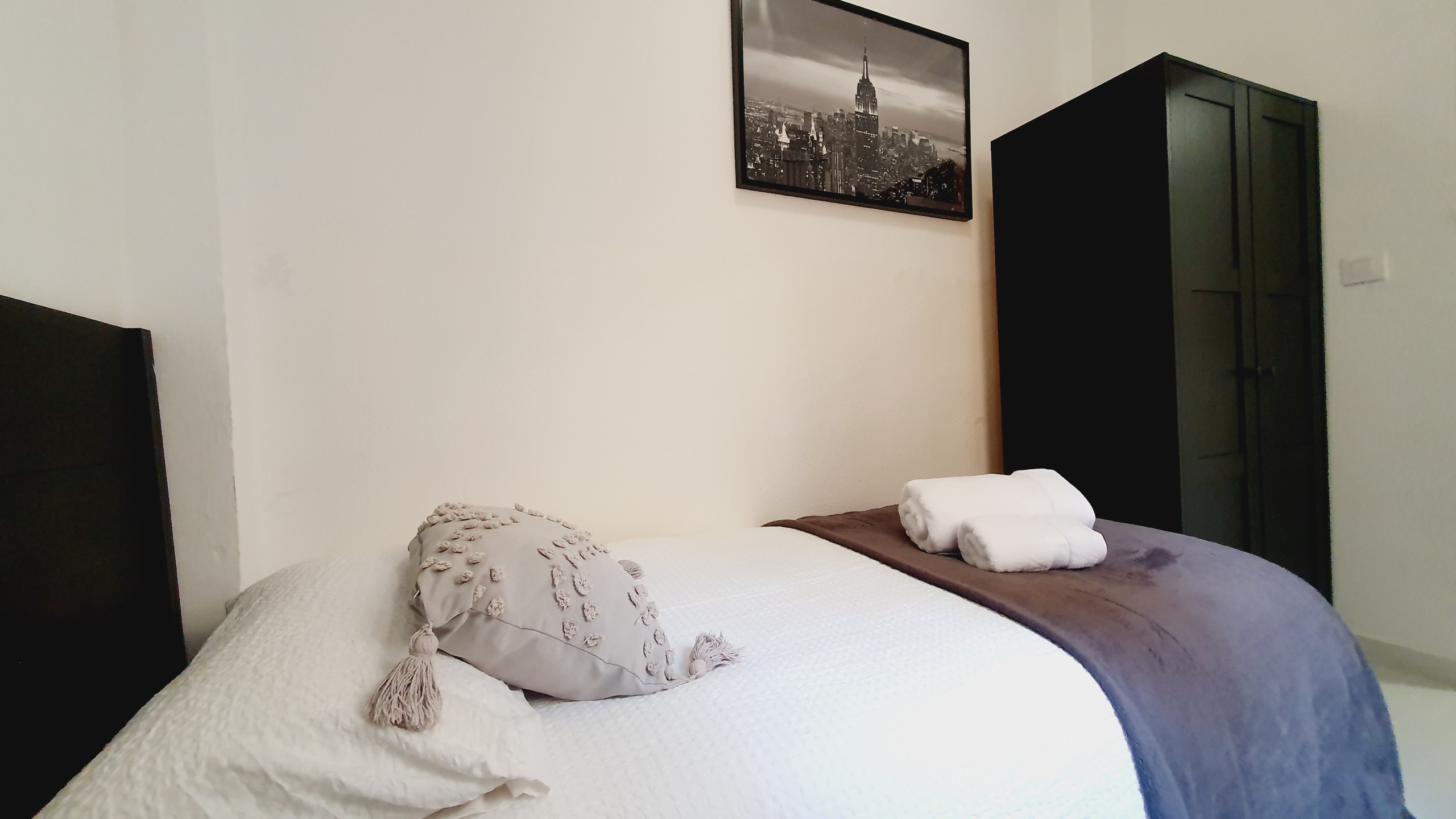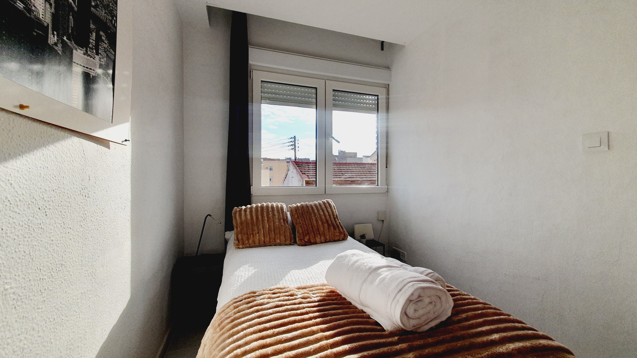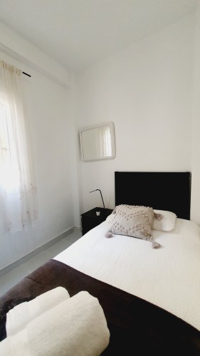 – Cama de 135cm, armario, mesitas de noche con lamparillas. Exterior con gran luminosidad.