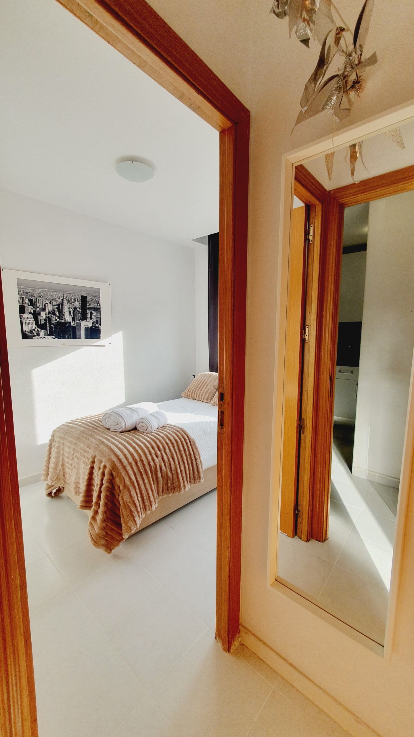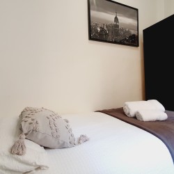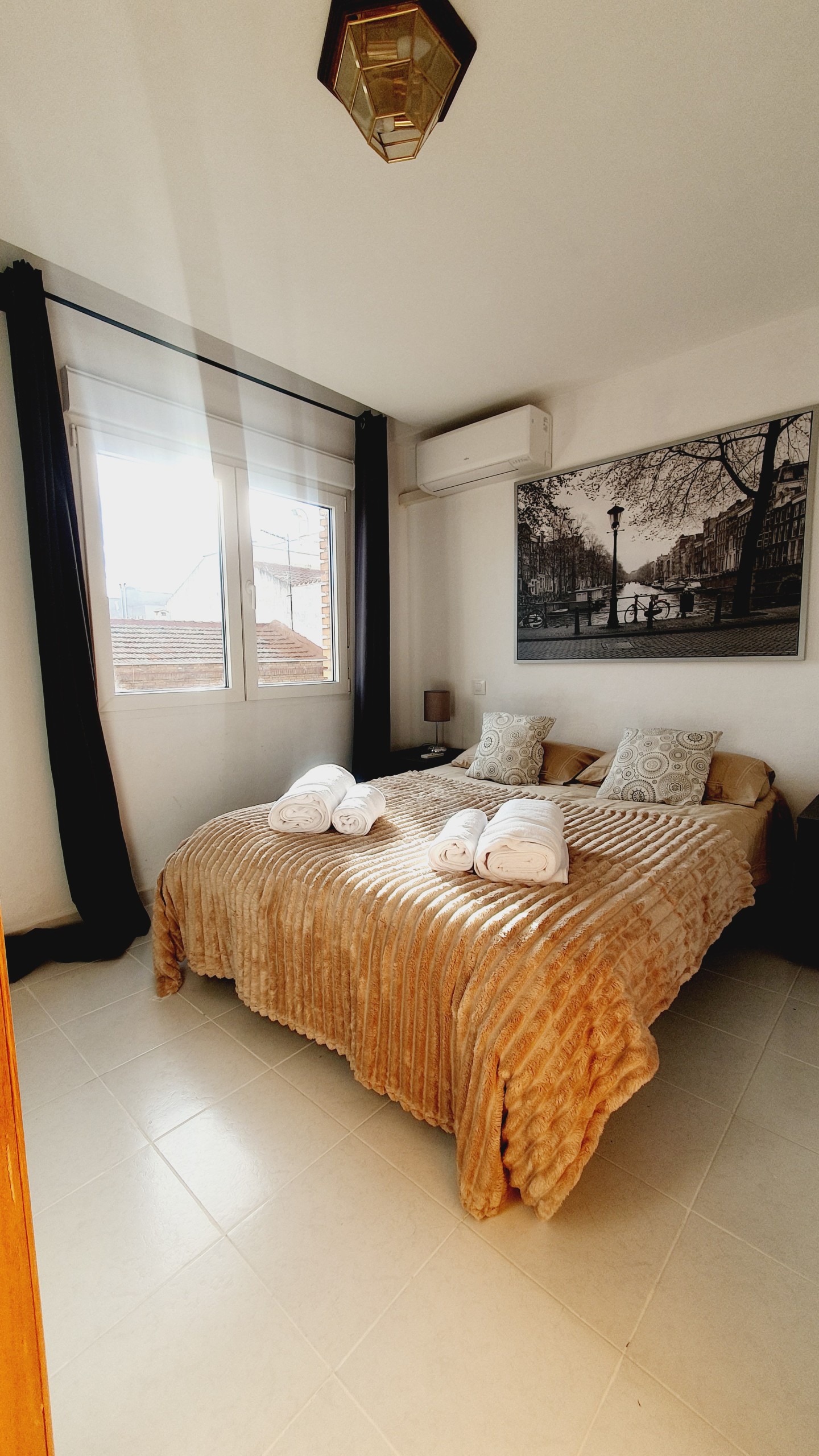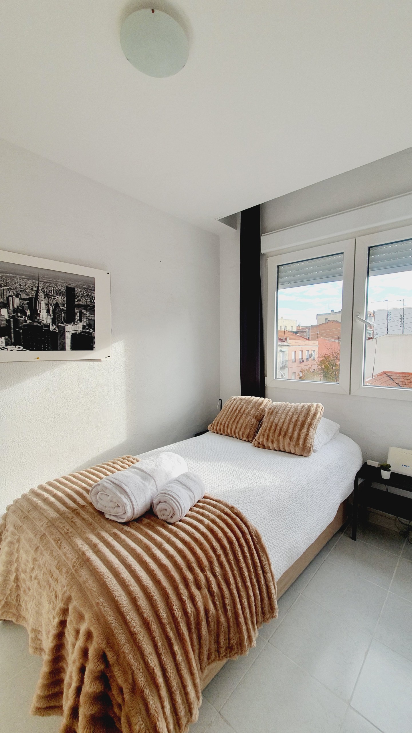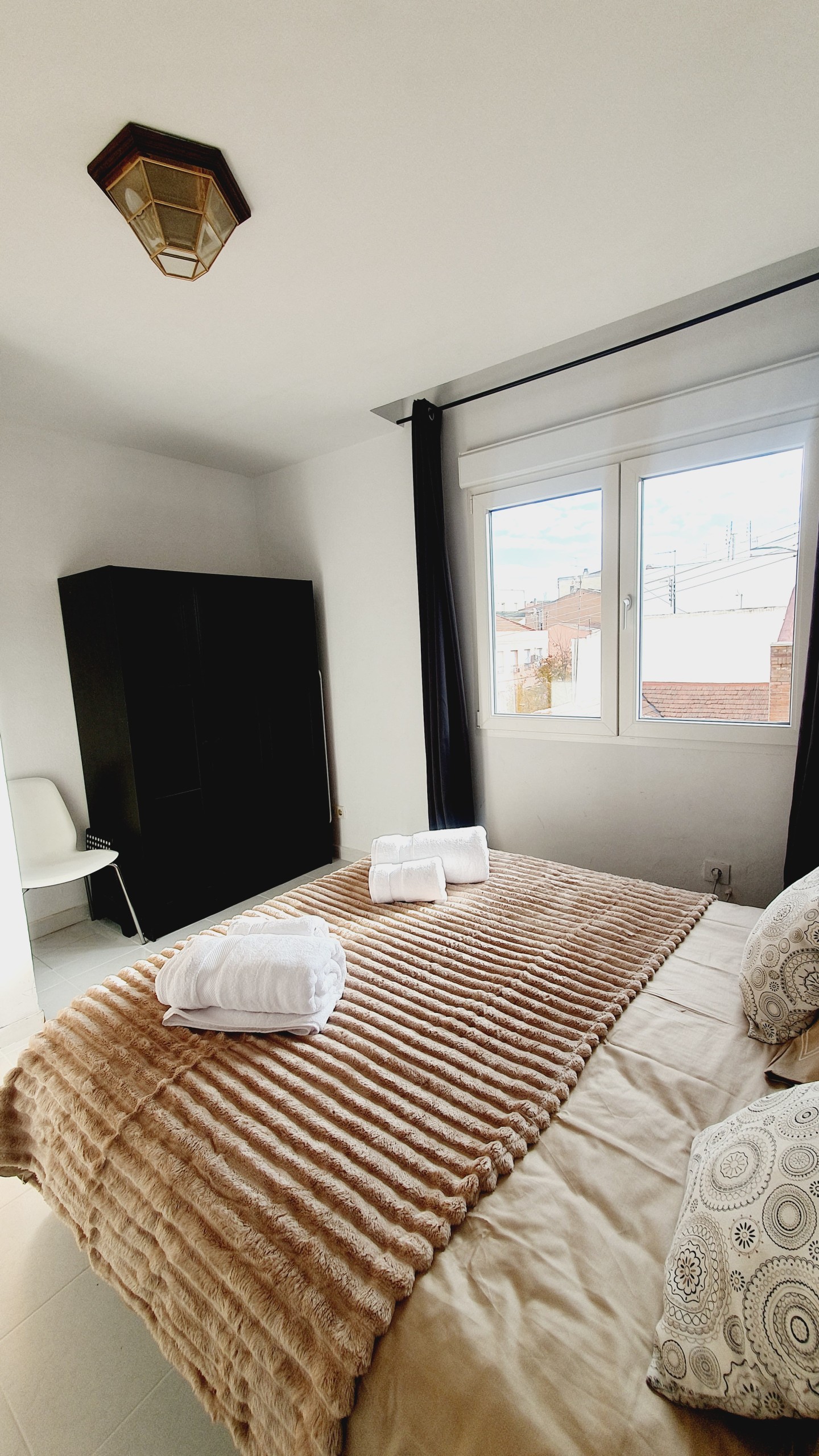 – Cama de 135cm, armario, mesitas de noche con lamparillas. Exterior con gran luminosidad.