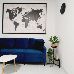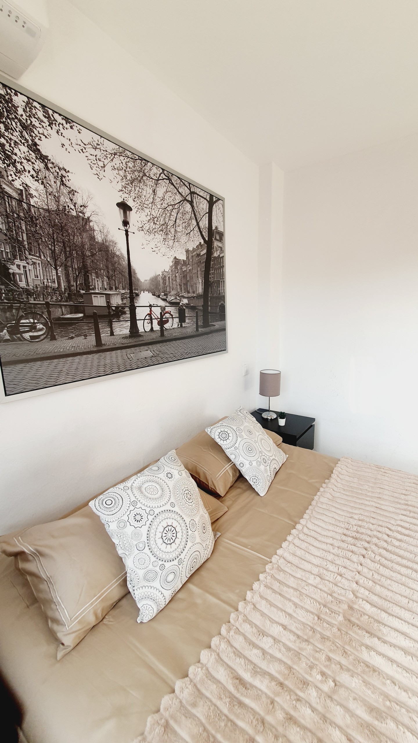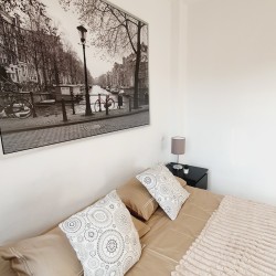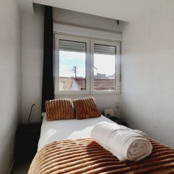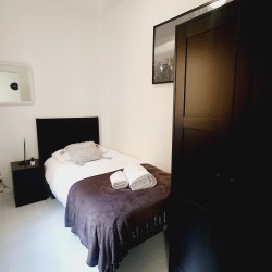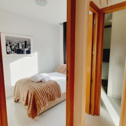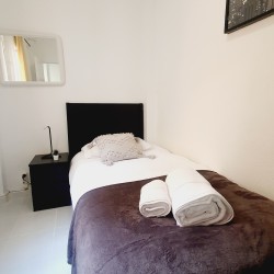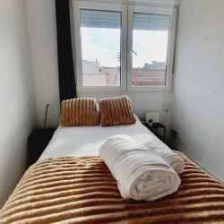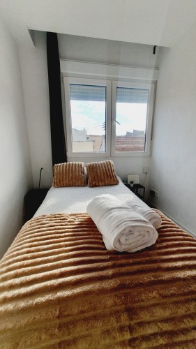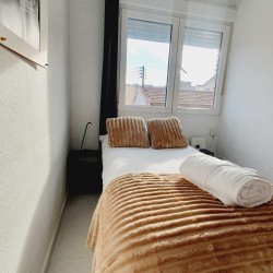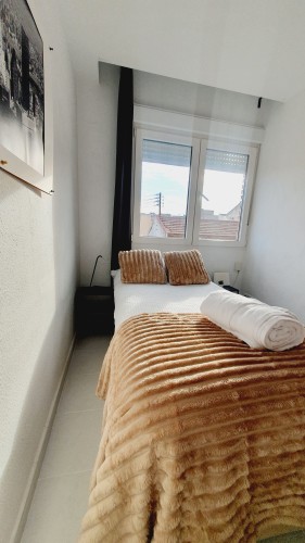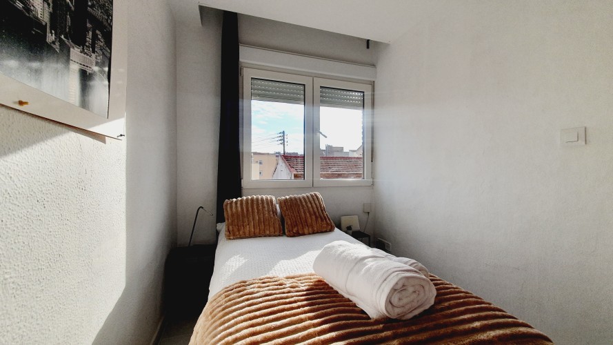 – Con cama canapé de 90cm, armario y mesitas de noche con lamparillas.