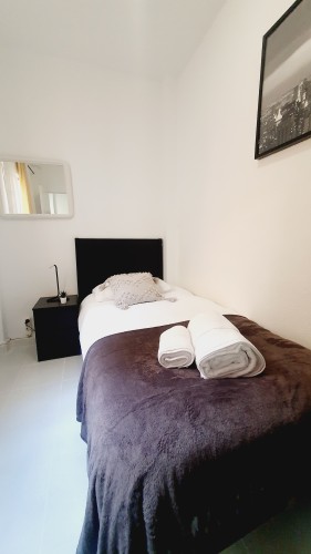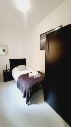 – Con cama de 90cm, cabecero y armario. También mesita de noche con lamparilla.