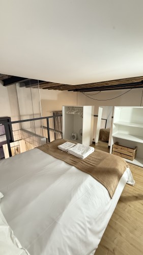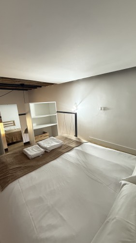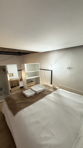 Piso con una habitación en la parte de arriba, ADICIONAL el piso dispone de un ESPACIO AMPLIO el cual puede SER UTILIZADO COMO DORMITORIO para recibir visitas, totalmente amueblado con su cama, armario y ropa de cama nueva.