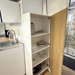 COCINA EQUIPADA (Vitrocerámica, campana, nevera horno, lavadora. ), y todos los utensilios de cocina necesarios.