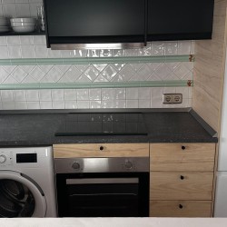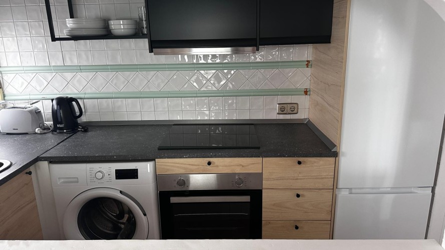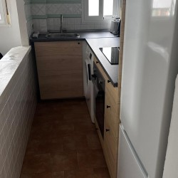 La cocina es tipo americana y se integra con el salón, creando un ambiente abierto y acogedor, perfecto para disfrutar de momentos de descanso o reuniones con amigos, está completamente equipada con todos los electrodomésticos necesarios y lista para ser utilizada.