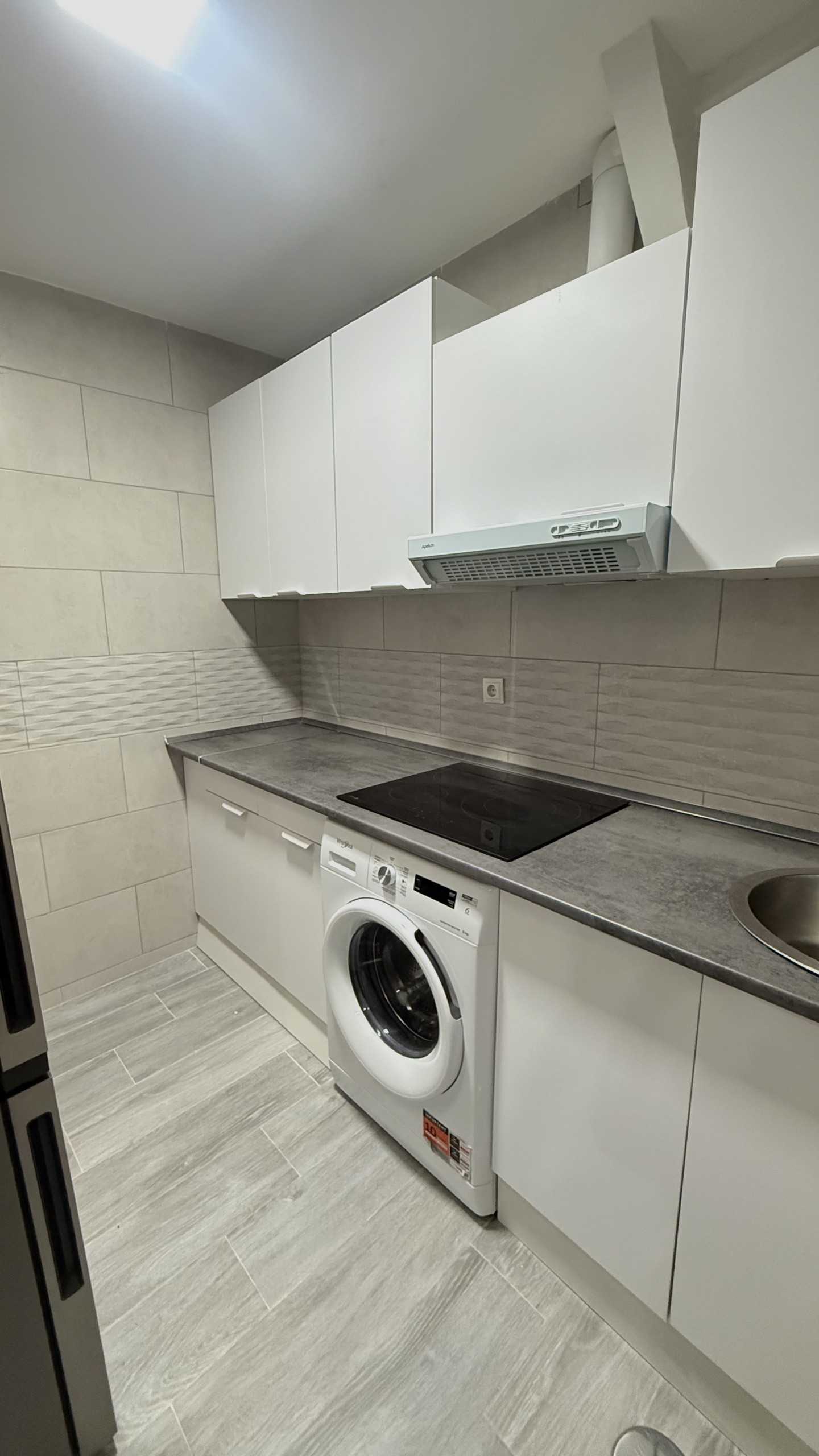 Cocina totalmente equipada con FRIGORÍFICO, LAVADORA, MICROONDAS, CAFETERA, COCINA A GAS DE 4 HORNILLAS.