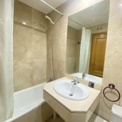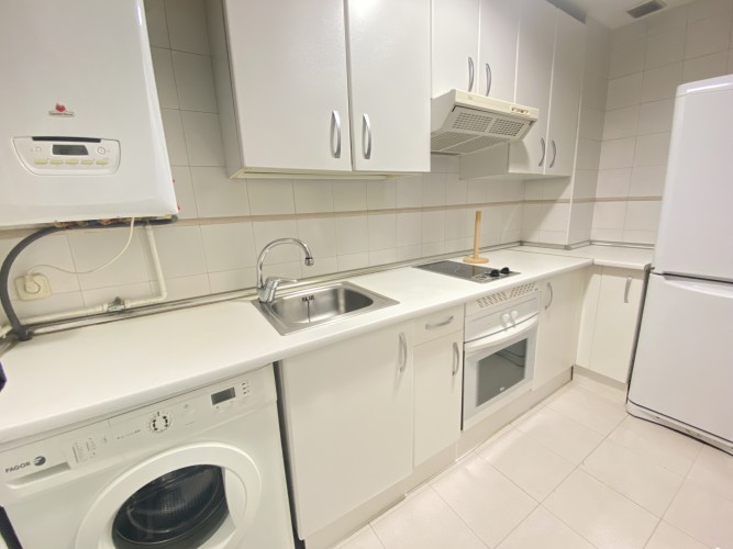 Posee una cocina completamente equipada con: FRIGORÍFICO, LAVADORA, MICROONDAS, HORNO, VITROCERÁMICA, menaje de cocina.