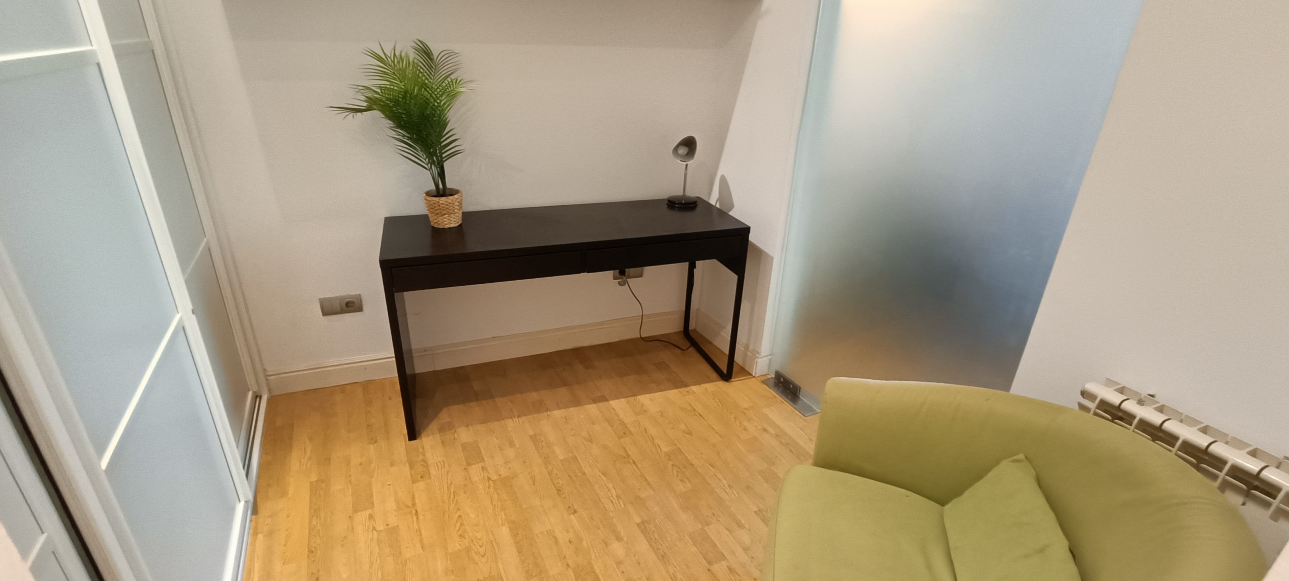 HABITACIÓN SECUNDARIA tipo ESTUDIO. con un gran ARMARIO EMPOTRADO DE TRES PUERTAS, y escritorio donde teletrabajar si fuese necesario